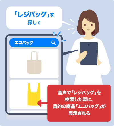 またgoo Search Solutionでは自然言語による検索も可能なため、音声検索にも対応可能です。スタッフは声のみで商品を検索することが可能なため、両手がふさがっている状態でも検索の操作ができます。